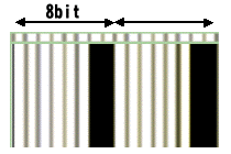 データ間隔がわかりやすいように、ここでは矢印や文字を書き入れている。この画像を見ると、磁気データは規則的な細かい周期性を持ち、その周期でいうと8つ単位でさらなる周期性があるように思われる。つまり、8bitをひとまとまりとしたデータが書き込まれているように見える。例えば、上の画像では