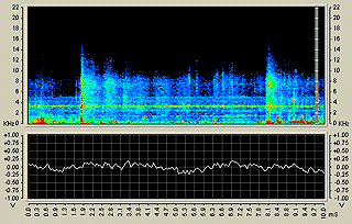 途中のスパイク部はお好み焼きをひっくり返した時の音である。レベルを合わせているわけではないし、実験は実に大雑把なものであるが、そんなに真剣に行う実験でもないのでこれで良いことにしておく。