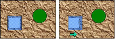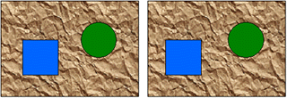 「さっきと同じで、青い□の位置をズラしてやれば良いんじゃないの?」と簡単に言う人は少しばかり考えが足りない人である。ちょっとでも考えてみさえすれば、大きな問題に気付くハズである。この図のように背景がある場合には、青い□の位置をズラしたら、そのズレた部分は一体どうしてやれば良いのだろうか?