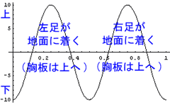 そして、こちらが女性が歩くときの「女性の胸板の上下・左右方向ぞれぞれの動き」である。