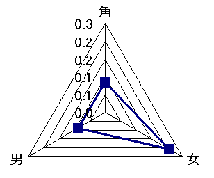 角が立つ四角い人の世の中で三角のうちに住むのが芸術家であるならば、その「角」と「画」の相関は調べてみたいと思うハズである。また、これまでに様々な「男」と「女」の関係を考えてきた「できるかな?」であるから、やはりここは「男」と「女」もノミネートしないわけにはいかないだろう。