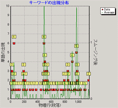 そこで、「画」・「角」・「男」・「女」の各語の出現分布を調べてみたのが次の各図である。もちろん、今回も前回
