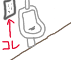 もし、その張り紙がなかった場合にはどうなるだろうか?その場合には、下の絵のような事故が発生してしまうのである。実際のところ、ほとんどの公衆便所で見かける風景だ。