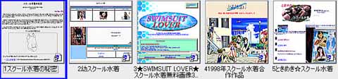 す・すると、何とスクール水着の第一位はワタシなのである。ワタシはスクール水着の世界チャンピオンなのである。思わず「スクール水着と言えばワタシですかぁ?このワタシが…」と絶句してしまったくらいなのである。「スクール水着と言えばワタシ、ワタシと言えばスクール水着」という必要十分条件でないのが不幸中の幸いではあるが、何ともビックリなのである。そして、今回もまたワタシ以外のページははもう何とも色使いまでよく似ていて、ワタシのテキスト主体のページは肩身が狭そうに薄汚れているのである。いや、薄汚れているまではいかないかもしれないが、少なくとも華やかな装いはしていないのである。