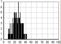 これを見ると、例えば、シートに書かれている数字が01〜24までの範囲の場合は、12回目位で半数の人がすでにビンゴになっていることが判る。一分に一個の数字というペースで読み上げていけば、5分過ぎには半数が終了している、というペースである。かなり速いペースである。