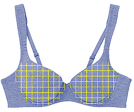 これを先程の格子模様の「ノーマルブラ」と比べてみれば、バスト部分がロケットみたいに飛び出して見えることが判るハズだ。ふくよかな膨らみをアナタのココロは感じ取るハズなのである。しかも、外見を無理に変えているわけではないので、この「イリュージョン・ブラ」を着用している女性の体にもココロにも何ら無理はかけていないのである。ただただ、それを眺めるもののココロにのみ訴えかけて、巨乳に見せるという魔法のブラジャーなのである。