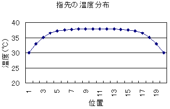 アマノジャクに上がり湯を浴びなかった場合は、指先が一様に冷えてしまっているのに対し、素直に上がり湯を浴びた場合には皮膚表面の温度は下がってしまっているが、冷えているのは指の表面近くの脂肪の部分だけで、筋肉も含めた指の芯は以前ホカホカ・アッチッチのままなのである。脂肪は筋肉に対して熱を伝えにくいので、表面の脂肪部分が冷たくても、その内部はずっとアッチッチのままなのである。