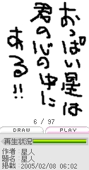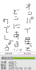 それにしても、上手いものも多いです。ririoなどのマウス運びや、醤油瓶の立体感、そして、doraの構図など少しビックリしました。"The Art"など、描かれていく筆を眺めると「あぁナルホド〜」と思わせるオチがついているものも多いので、順番はあくまで参考にとどめて眺めてみると良いかも。 (遊びに来たらしき「しなもん@渋谷」には良い遊び場が見つかると良いですね…)