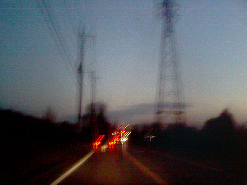 夕暮れの送電線を見ながら、少し古そうなホテルへ。少し薄暗くて、蝋燭の光が揺らめいていて、船の中のような場所。あるいは、古い列車の中のような場所。