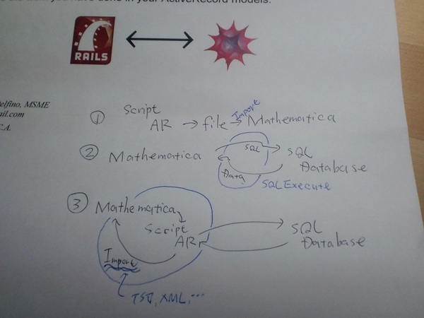 ちなみに、1の例は、RubyスクリプトからActive Recordを使い、中間ファイルを作り、そのファイルを介してMathematicaでActive recordモデルのデータを読み込む例で、3の例は中間ファイル無しに(けれど、原理的には1と同じやり方でSQLサーバ内のARモデルにアクセスするものです。