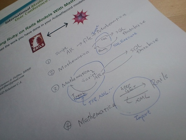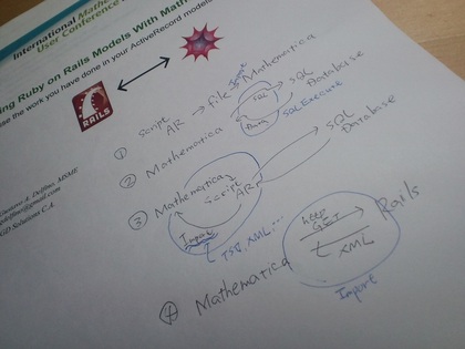 こういう資料を眺めていると、この実践例は、MathematicaからRuby on Railsのactive Record モデルのデータを使う場合ですが、その逆に、Ruby on Railsのactive Record モデルにMathematicaの機能をメソッドとして実装した実践例も作りたくなりますね。