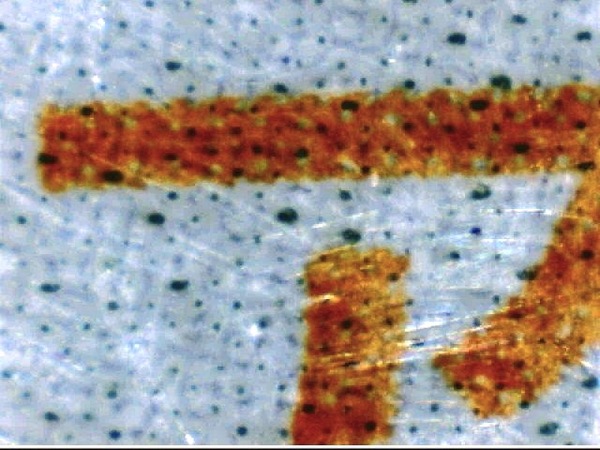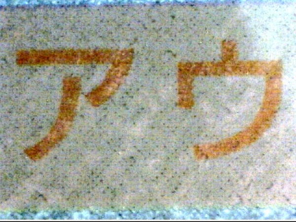 まずは印刷を顕微鏡で眺めてみた。すると、包装外側の最下部にオレンジ色の中間調で「クジ」印刷がなされ、その上が白で塗られ、さらに黒など他色の印刷がされている。内側からは、印刷された「クジ」は何の苦労も無く見えるけれど、外側からは全く見えないという仕組みになっている。