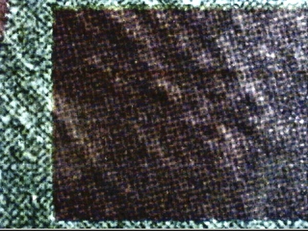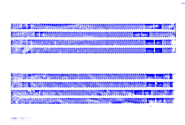 このJRが発行したチケットの裏面に書き込まれている磁気データを、磁気微粒子粉末で可視化して、2次元画像に変換してみたものが下に貼り付けた画像である。上下4行づつ、計8行の磁気データが書き込まれていることがわかる。この磁気データを眺めた時、興味深く・面白いことは、チケットの中心を軸にして、線対称に上4列と下4列に対して同じデータが書き込まれているように見えることである。