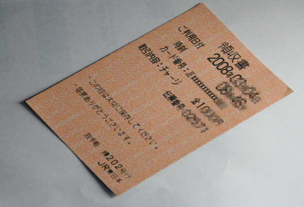 ICカード化されているSUICAなどと違って、通常のJR切符などは、裏面の磁気データで管理されている。右に貼り付けたのは、JRの切符ではなくて領収書だけれど、基本的には通常のJR切符も、同じサイズであるし、同じような仕組みになっていると思う。
