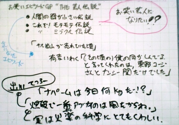 あるいは、出川哲朗が爆破ロケで、スタッフに「今日はナパーム何キログラム?」と聞き、実は火薬の科学・効果にとても詳しい話とか、何となく意外なすごさが感じられて面白い。