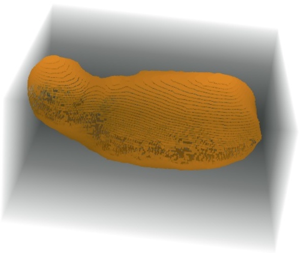 立体的な3次元物体を、あたかもCTスキャンのように断面にして、それらを重ねて眺めてみると、元の立体的な姿が蘇ります(参考:「透明シート印刷+オイル浸け」で「立体プリント」、「おっぱい曲面方程式」を立体(モドキ)プリンタで出力してみた!)。