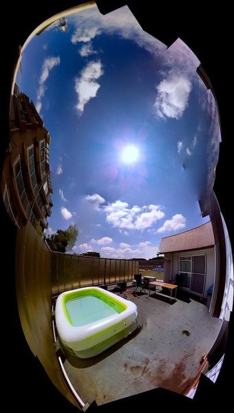 自転車用空気ポンプで空気を入れ続けること1時間(それは、小島よしおの「そんなの関係ねぇ!」のポーズを60分間続けるということです)、蛇口を開いて水をプールに注ぐこと数十分、ようやくプールに(許容量を超える)水が満たされました。実際にプールに入ってみると、Amazon に掲載されている写真よりずいぶん大きく感じます。