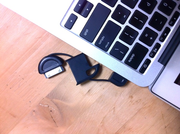 「100円玉サイズのiPhone接続ケーブル」で書いたように、数ヶ月前、秋葉原にある電脳雑貨ショップ「あきばお〜6号店」で100円玉サイズのiPhone接続ケーブルを買いました。それは、大きさはコインサイズで、iPhoneをUSBでコンピュータに接続し、充電や(ファイル転送やモデム接続といった)通信をするための接続ケーブルです。ちなみに、そのケーブルはお値段は630円ナリで、右の写真のようなケーブルになります。