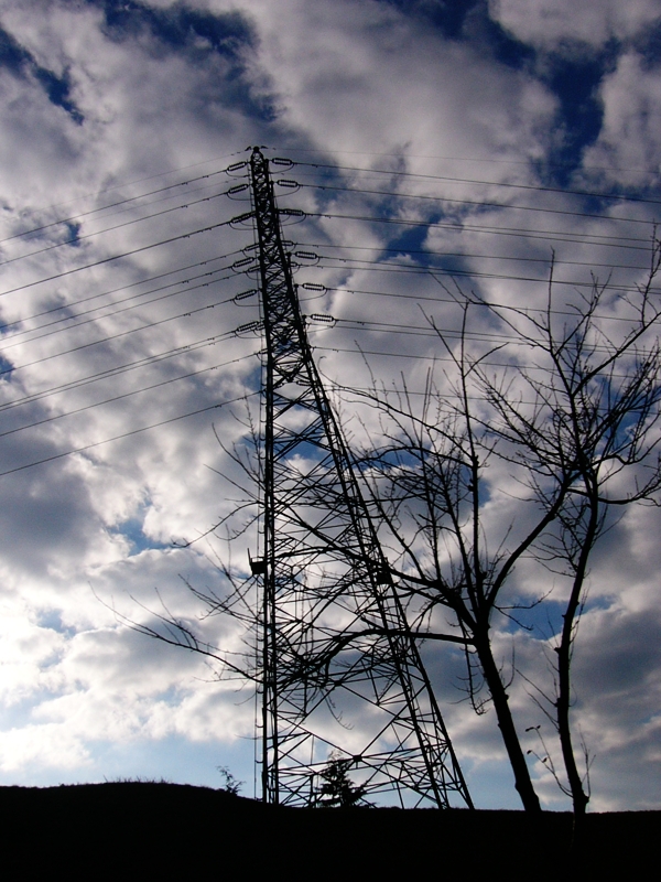 夕日に照らされた送電線はとてもキレイで大きいです。送電線も好きです。(リンク)