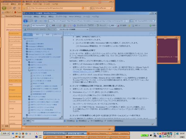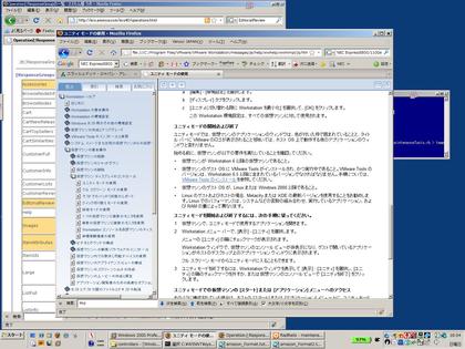 たとえば、下の画像は一見よくあるWindows画面だが、実際には(ホストOSである)Windows Vista上で動いているウィンドーとVMware上で動かしているWindows 2000が表示しているウィンドーが混在している。