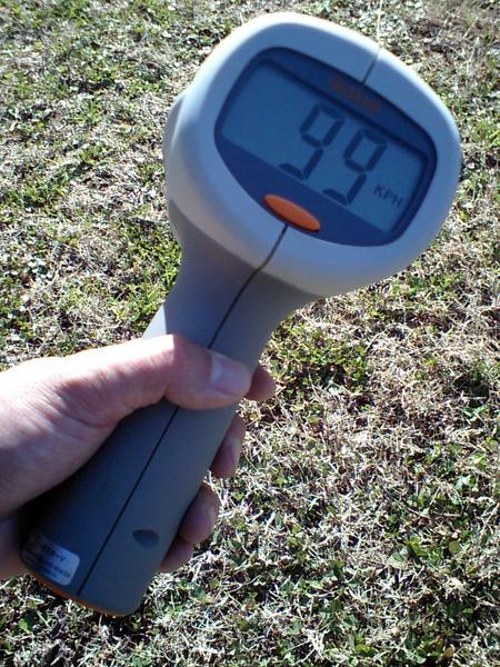 スピードガンで、目差せ球速100km/h。