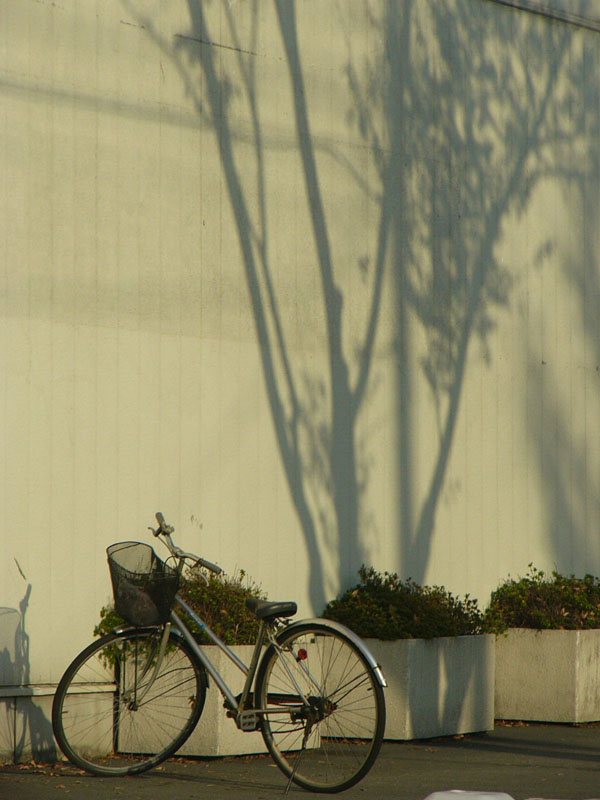 朝見かけた、「自転車と木の影」と帰り道に見かけた「ススキと黄色い花」と「青い空」です。写真はどういう風に貼り付ければ、レイアウトが自然なんだろう?