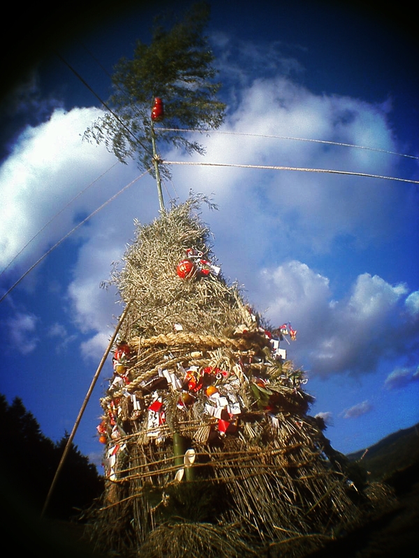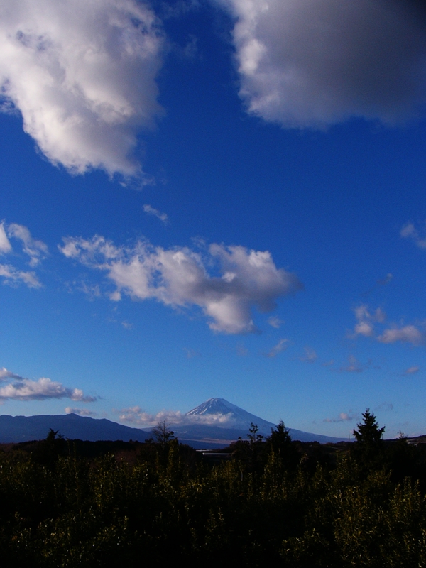 函南町で。空に映える富士山や、空に伸びるどんど焼き用のわらや、空を横切る送電線。そんな景色が今日見た景色。