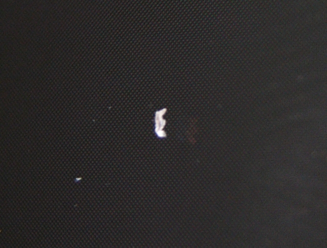 右の写真中央に位置しているのがゴミなのだが、非常に気になるくらいの大きさである。アセンブリ時に混入したのだろうか…? 出荷前に外観の視認確認はしていないものなのかな。品質管理がされているのか不安になる、かも。