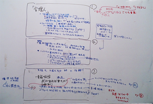 夜、新橋で「行動経済学 経済は「感情」で動いている」の友野典男さんへのインタビューのテープ起こし文章(2時間分でトータル A4 30ページ!)を元に、「行動経済学」@ホワイトボードを描く。ホワイトボード中に大きく登場している「幸福の科学」は、もちろん実在の団体とは関係ありません…よね。