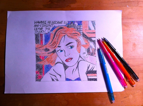 今日作ってみた「一瞬で消せるフルカラープリント」は、ポップ・アートの(アンディ・ウォーホルと並ぶ)代名詞画家、ロイ・リキテンスタイン(Roy Lichtenstein)の”M-MAYBE”です。消えるのは「一瞬」でしたが、4色のボールペンでフルカラー画像を手作業で描くのは、優に2時間かかってます。描くのは2時間、消すのは一瞬…今日は「一瞬で消せるフルカラープリント」を作ってみました。