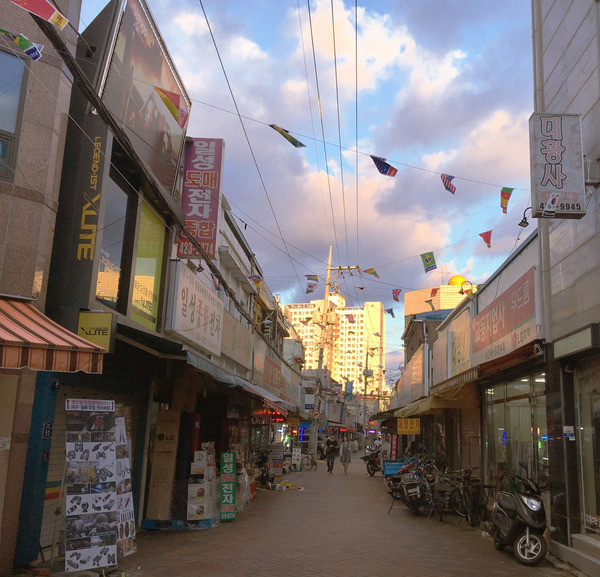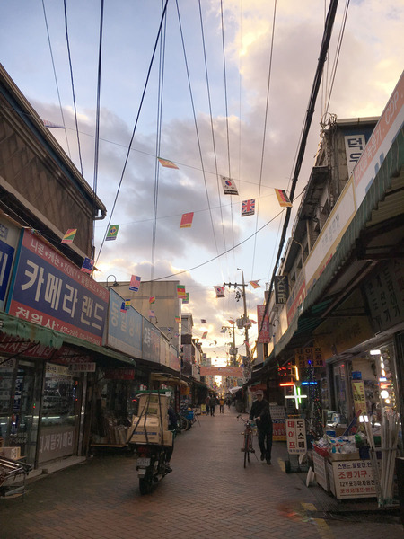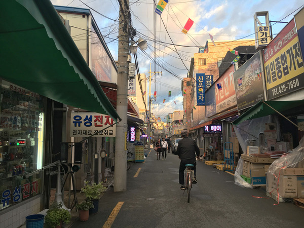 台風が通り過ぎた夕暮れ前、大邱のの電気街を通り過ぎると、とても懐かしさを感じます。古い電気部品ばかりが並んでいるようすが、遙か昔の昭和の頃の秋葉原みたいで、何だか不思議な心地になります。