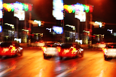 EOS 1/1.6一眼レフ・デジカメのための立体アダプターを…使おうと、思ったらもう夜になっていた休出日。そこで、撮ってみたのは「今日の車窓から」 通り過ぎていく光や目の前の光が、四次元の立体空間の中であなたに迫る? とうわけで、平行法でご覧下さい。