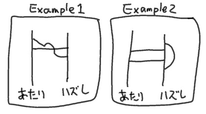 この「時空間を歪ませるようなスペシャル線」は一体どう扱う・どう考えれば良いのでしょうか?そんなに考え込むことでもないのかもしれませんが、あみだくじというものを考えるとき、「通らない線がある」「横線に対して、(両方向に進む経路があって欲しいのに)片方向に進む経路しかない」「線を追いかけていくと、下から上に遡らなければいけない部分がある」というのは、あまりに「おさまりが悪いこと」であるように思われます。