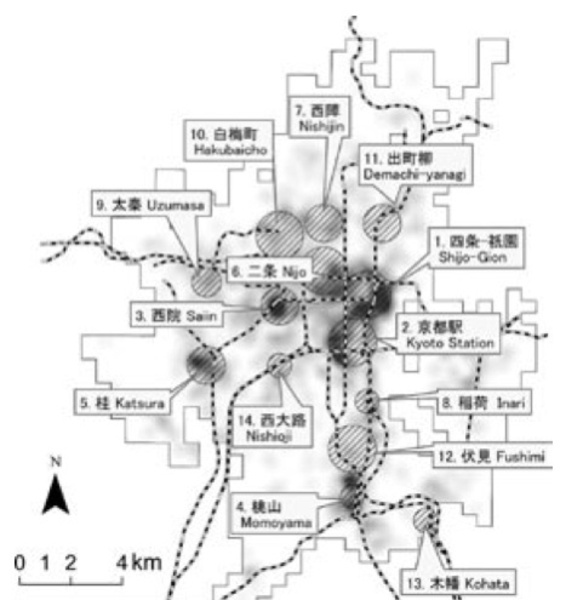 右の図は、犯罪発生密度の時空間分布図を示したものです。京都周辺で発生した「ひったくり犯罪」を”平面2軸=空間分布/高さ軸=時間分布”として表したものです。向かって左の辺りが「桂町周辺」で、右の辺りが「桃山周辺」です(さらに細かな京都ひったくり犯罪分布地図は「犯罪発生の時空間 3 次元地図― ひったくり犯罪の時空間集積の可視化 ―」を読むとわかります。京都の町に詳しい方は、この文献に収録されている”地図”を眺めてみると、その実にローカルな風景を脳裏に思い浮かべながら眺めてみれば、実に興味深いかと思います)。