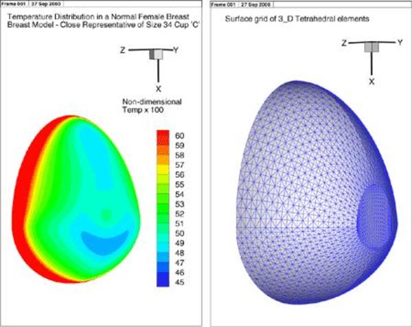 乳がん検査を楽にすることなどを目的に、女性のバスト変形を有限要素法(FEM)で計算したりする研究は多い。バストを変形させたときの形状変化から、バスト内部に変形のようすが通常と異なる異常な組織、つまり腫瘍などが存在していないかを確認する方法を考えるために、さまざまな研究がおこなわれている。