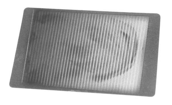 比較的平らな磁石、たとえば、「カード型磁石」の着磁状態を見てみると、意外な「丸い磁石」の「着磁」分布と同じように、N極とS極が何層にも(厚み方向とは直交した方向に)重ねられたバームクーヘンのような具合に着磁されているものが多い。たとえば、右の写真のような(広告を兼ねた)カード型磁石の着磁状態を見てみると、やはり、幾重にも重ねられたバームクーヘンのような具合に着磁されている。