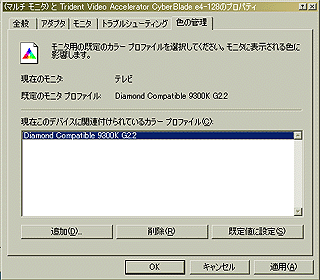 上手くいっていないのも当然で、何しろ色の調整なんか(ソフト上では)全然していないのである。もちろん、CRTディスプレイの方は色味やコントラストや何かは結構調整した。しかし、NotePCの液晶の方なんか全然調整はしていない。まして、メインで使っているWindows2000上では調整なんか全然していないのである。