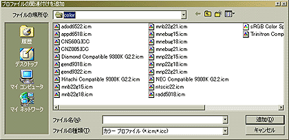 この中で、自分の使っているディスプレイに合わせたカラープロファイルを選択してやるといいのだろうか。とりあえず、windowsディレクトリの中には色々な種類のデバイスのカラープロファイルがずらずらとある。例えば、こんな感じである。