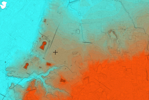 試しに、国土地理院マップで眺めると、一周をする間の最高・最低値で5mくらいの標高差があった。古墳本体を囲う堀は一体化した大きな湖のようで、重力的には等ポテンシャル面を成しているけれど、外堀は同じ標高でない作りになっている。
