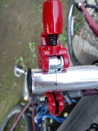 そこで、ハンドルの位置を可能な限り下げ、シートを高くしました。つまり、ハンドルを外し高さ調整用のリングを全部取り、ハンドルの傾きを少し変え、低めの姿勢で乗れるようにしました。