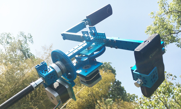 先週、Ricoh Theta用の極座標自動アームを作った。それを旅先で持ち歩き・街中で2軸アームを