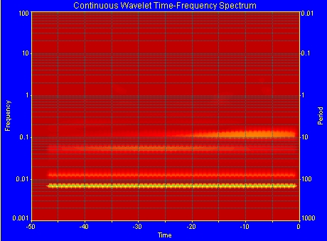 とある条件下で比べた、「品川←三島」と「東京→三島」の振動周波数比べ、です。MorletのWaveletでMRAをかけた結果です。縦軸の周波数は(*100Hz)に相当します。「東京→三島」の時系列は「左→右」に進みますが、「品川←三島」の時系列は「右→左」に進む方向です。また、強度を示した色は左右でレンジを揃えていませんので、それぞれの周波数の特徴だけを比べることしかできません。