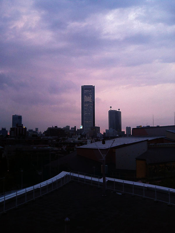 夕暮れ過ぎに駅から会場に向かって歩いていくと、なんだか少し蒸し暑い。これは、いかにもアジアの夏なんだなぁ、と思う。ビールを飲んだら気持ちよさそうだなぁ、と思いつつ眺めた、駅の近くの花屋や、線路越しに見た駅や、会場から眺めたいくつかのビル。会場に入る前に、中庭でベンチに座ってほんの少し資料を手直しをしていると、空には飛行船が浮かんでいる。夏の空だなぁ。