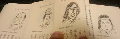 私が手にしていた本は、小谷野敦「大河ドラマ入門 (光文社新書)」というもので、一言で言うなら、これはまさに「怪作」である。著者人による大河ドラマ出演者たちのイラストが最高に面白い。そのイラストを見て「大笑いする」というのが、まずは、この本を一番楽しめる読み方だと思う。